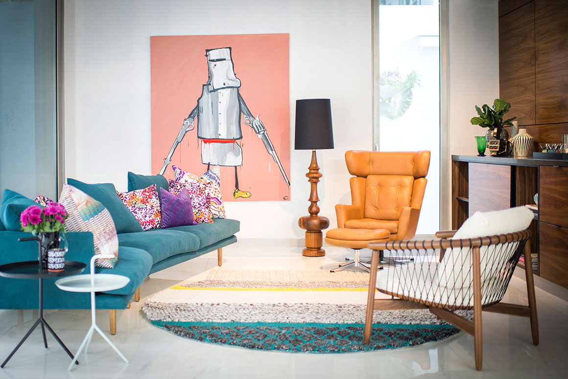 The foundation of the architecture lies in a palette of clean white walls against refined timber panelling, sprinkled with geometric brickwork. Bursts of colour in the form of primary-shaded seating, graphic wallpapers and sculptural rugs, are carefully layered to restrain the exuberance.