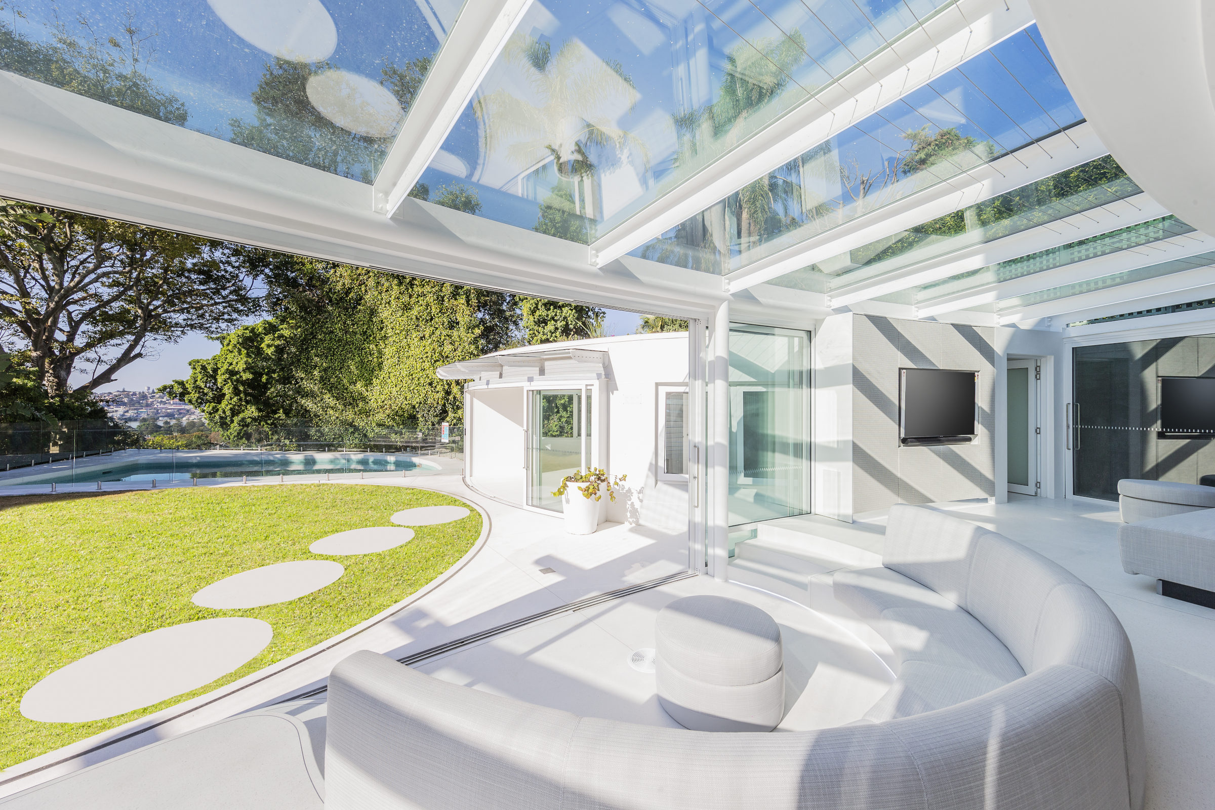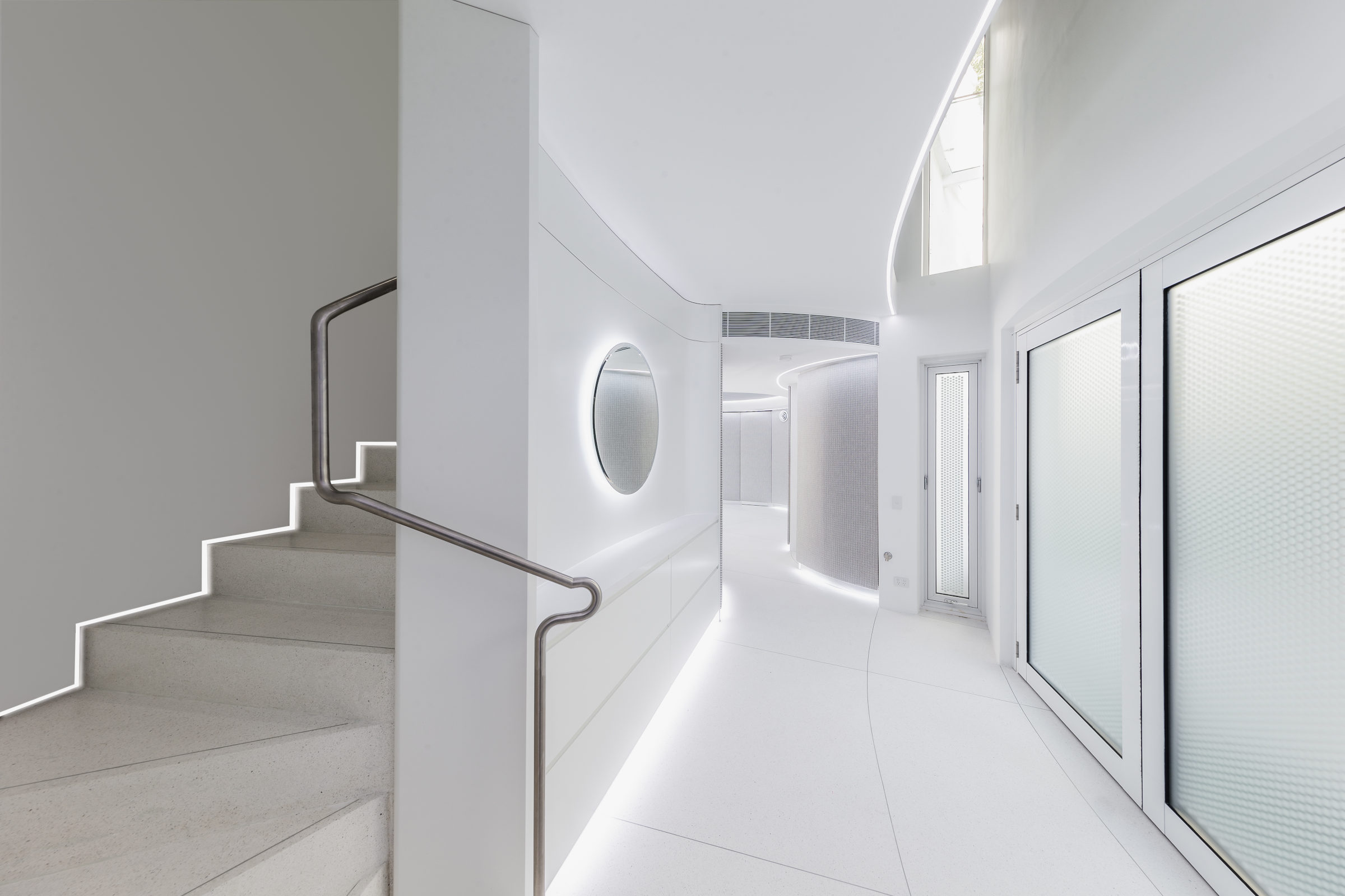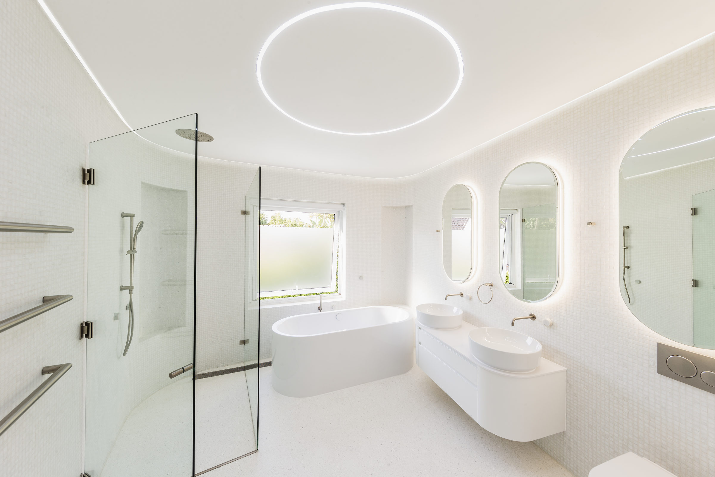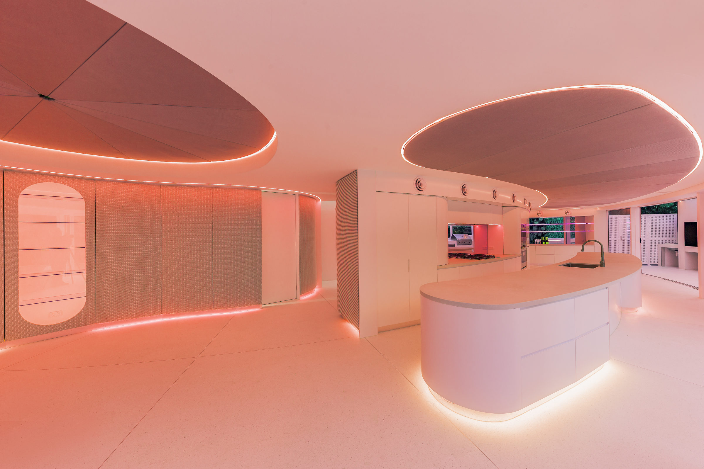 The detailing of this project has the level of finesse you would expect from superyacht interiors. A crisp, clean palette, curved forms and moments of light and shadow are carefully orchestrated to enhance the home’s connection to its surroundings.